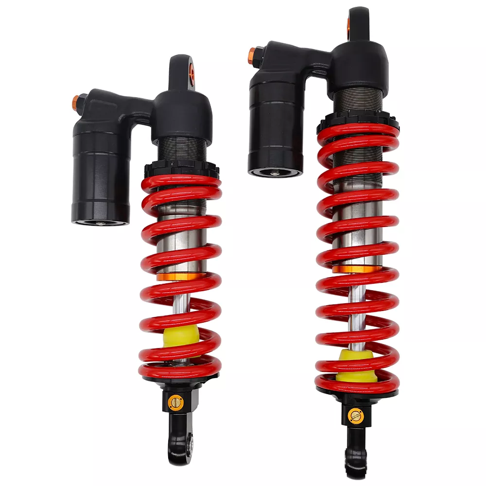 OLIE-GAS SEPPERATIE BUITSLAGEN AIRBAG UTV Achterschokdemper is speciaal ontworpen voor UTV's, volledig terreinvoertuigen en hardcore off-road voertuigen, die dienen als een upgrade-optie voor originele fabrieksschokdempers. Ze hebben onafhankelijke airbagkamers en hogedruk stikstof oliegasscheidingsstructuren, waardoor de warmtedissipatie en de impactweerstand aanzienlijk wordt verbeterd, geschikt voor complexe terreinen zoals woestijnen, rotsen en modder.