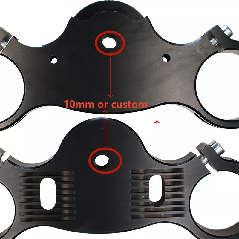 De Racing CNC Triple Clamp is ontworpen voor duurzaamheid en biedt uitzonderlijke kracht om uitdagende rijomstandigheden te weerstaan. Deze klem biedt betrouwbare stabiliteit, zodat u met vertrouwen van elke rit kunt genieten. Bovendien bieden we aanpasbare diameters voor middelste gaten, zoals 10 mm, 12 mm of 15 mm, zodat u deze kunt personaliseren volgens uw exacte specificaties. Om de installatie naadloos te laten verlopen, leveren wij ook alle benodigde schroeven mee. Ervaar zorgeloos rijden met de Racing CNC Triple Clamp, speciaal op maat gemaakt voor jouw motorfiets!